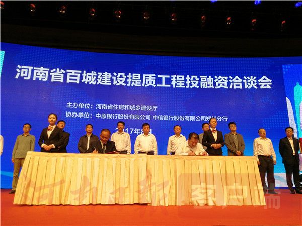 為了深入推進河南省百城建設(shè)提質(zhì)工程,加強政、銀、企的聯(lián)系溝通,拓寬各市縣的融資渠道,提高融資效率和效果,為百城建設(shè)提質(zhì)工程提供資金保障,經(jīng)省政府同意,8月31日,河南省住房和城鄉(xiāng)建設(shè)廳在鄭州舉辦了河南省百城建設(shè)提質(zhì)工程投融資洽談會,這是全省百城建設(shè)提質(zhì)工程自去年底啟動以來,第一次舉辦的全省范圍內(nèi)的百城建設(shè)提質(zhì)工程投融資洽談會。