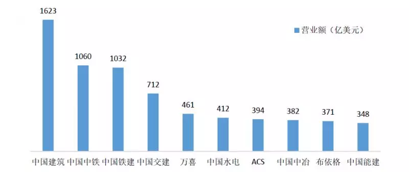 中國建筑以1623億美元的營業(yè)收入,繼續(xù)蟬聯(lián)全球最大上市建筑公司冠軍;中國中鐵則以1060億美元的營業(yè)收入穩(wěn)居第二,中國鐵建以1032億美元的營業(yè)收入排在第三位。