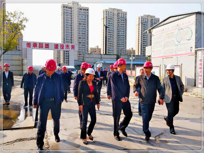 2018年10月18日上午9時30分,開封市黃玉國副市長、市督查局李海軍副局長、市住建局關鐵憲副局長等市領導一行到河南中城金明府項目部進行視察工作,河南中城董事長、總經理、項目部經理、及開發(fā)單位新楓華公司、建工監(jiān)理單位等重要領導隆重出席迎接市領導的視察工作,黃副市長對我公司承建的金明府項目給予了高度評價及認可,并現場作了指導工作。