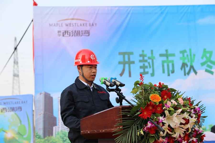 開封新楓華置業(yè)副總裁馬春光受邀上臺發(fā)表講話。開封新楓華置業(yè)始終秉承“國際,人文,生態(tài),唯美”的產(chǎn)品理念,倡導(dǎo)與實踐綠色生活,精工匠筑6000畝灣居大盤楓華·西湖灣。我們愿意攜手各位同仁凝心聚力,將人居環(huán)境回歸“生態(tài)”本質(zhì),為加快建設(shè)特色鮮明、生態(tài)優(yōu)良、環(huán)境宜居的美麗開封做出更大的貢獻(xiàn)!