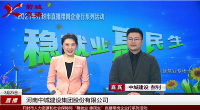 3月25日,2021年開封市“穩(wěn)就業(yè) 惠民生”直播帶崗企業(yè)行“遇見好時(shí)光”建筑業(yè)專場在開封電視臺播出,我公司受邀參加此次活動。副董事長程毅、董事長助理彭釗代表公司參加節(jié)目錄制。