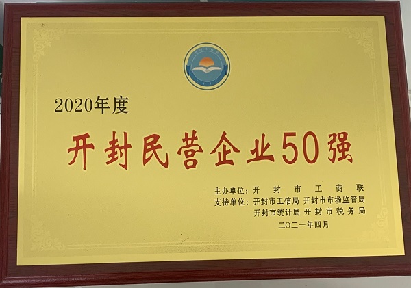 我公司代表出席會(huì)議并領(lǐng)取2020年開(kāi)封民營(yíng)企業(yè)50強(qiáng)獎(jiǎng)牌