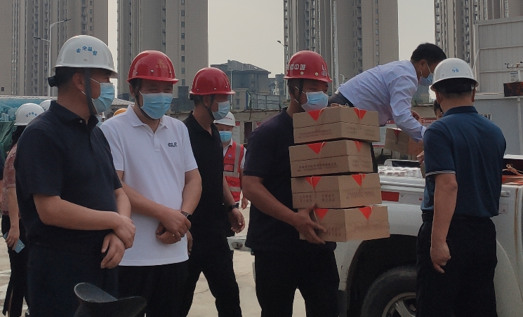 2022年9月10日,一年一度的中秋佳節(jié)當(dāng)天,我市住房和城鄉(xiāng)建設(shè)局黨組書記、局長(zhǎng)霍國(guó)防帶領(lǐng)局部分班子成員,局機(jī)關(guān)科室及局屬單位相關(guān)負(fù)責(zé)人,蒞臨我公司承建的海龍·西湖華府項(xiàng)目工地,向奮戰(zhàn)在工程一線的基層建設(shè)者,送來(lái)節(jié)日慰問(wèn)品,并表達(dá)親切的問(wèn)候與祝愿。